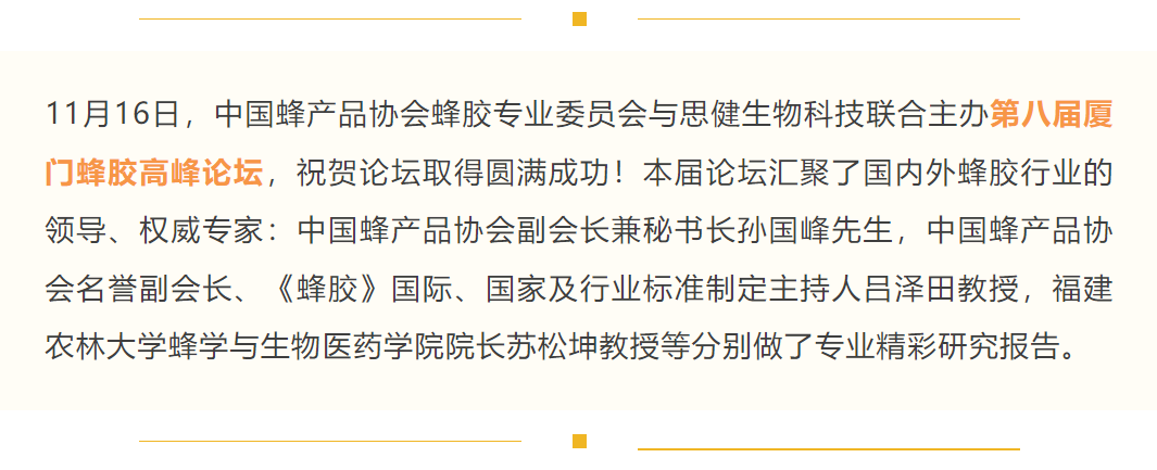 祝賀第八屆廈門蜂膠高峰論壇取得圓滿成功!思健努力譜寫蜂膠產(chǎn)業(yè)新篇章